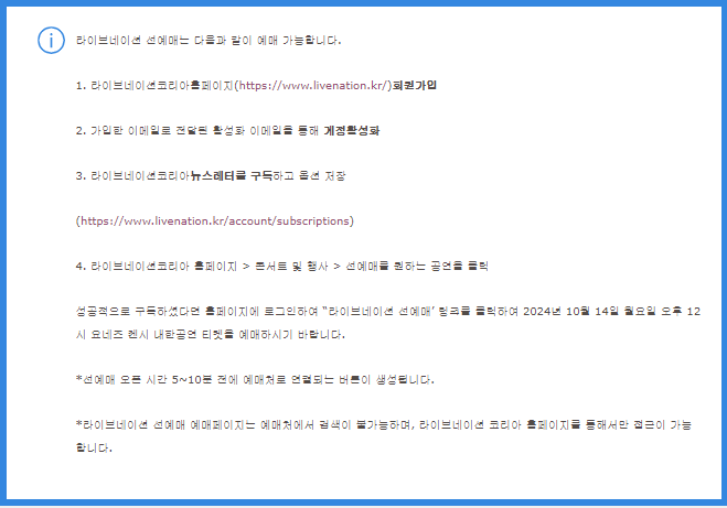 ① 선예매 - 라이브네이션 코리아(https://www.livenation.kr/)