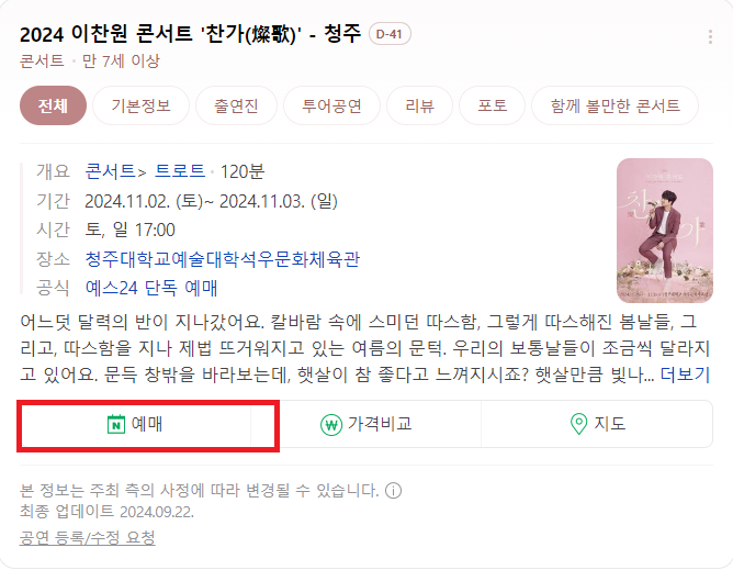 네이버 예약으로도 이찬원 콘서트 예약이 가능한데,