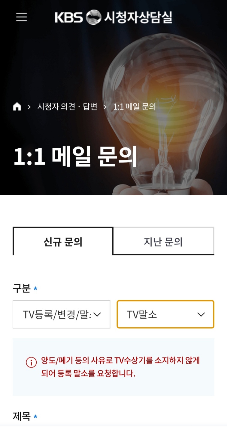 그리고 수신료 해지를 위한 1:1 문의시 증빙파일을 첨부하게 되어있는데,